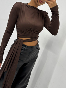 Krótka bluzka z rękawem dzwonek - Czekolada